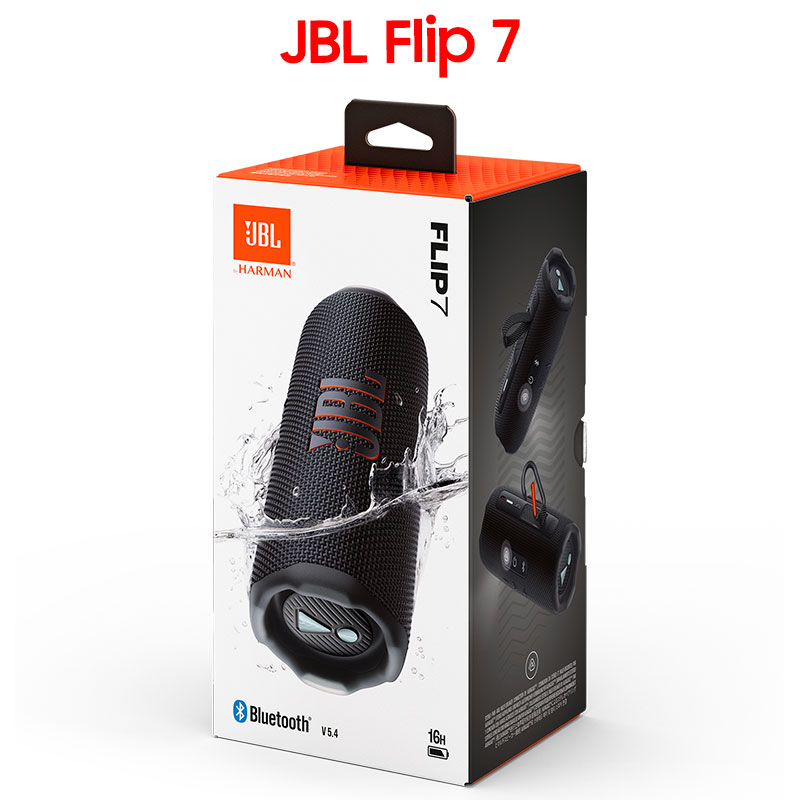 • The soundtrack to our life, right in the palm of our hands. The JBL Flip 7 is undefeated JBL sound that travels with us wherever we go. Because music has no boundaries, and neither should we. Whether we’re hosting a beach party, relaxing in our backyard, or setting the mood for a cozy night in, the Flip 7 is designed to enhance any experience, anywhere life takes us. And now, our signature sound is bigger and bolder than ever, thanks to JBL’s AI Sound Boost. The end result? The Flip 7 leaves our friends and family wondering where all that big, glorious sound could possibly be coming from. But it’s not just pretty and powerful. The Flip 7 takes a beating without missing a beat, boasting industry-leading IP68 waterproof, dustproof and drop-proof. Plus, with new Playtime Boost we can enjoy up to 16 hours of playtime—because the moment should only ever stop on our terms. Wouldn’t it be great to share the sweet sound of JBL far and wide? Now we can. Effortlessly connect with other Auracast™ enabled JBL speakers to cover more ground (and more ears) with the same playlist, whether we’re touring the town with our cycling crew or extending our dinner party to the back patio… and the front yard. In short, this is not the average portable speaker. It’s a pint-sized audio boss.