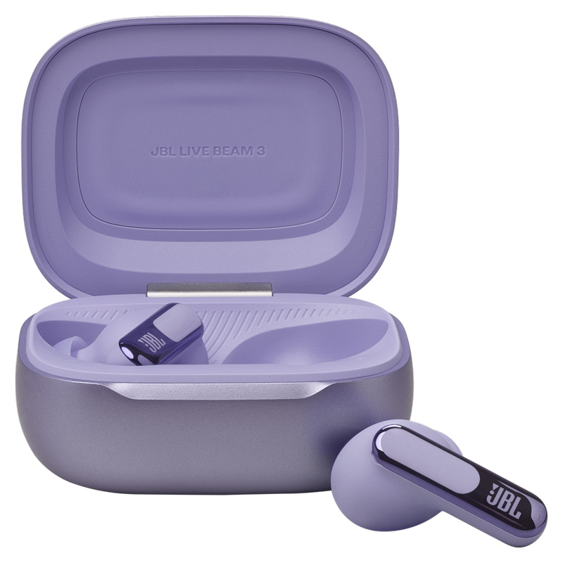 Get customized sound without ever looking at your phone. Use the controls on the Smart Charging Case™ of the JBL Live Beam 3 true wireless noise-cancelling earbuds with Hi-Res Audio to customize all their features without opening the JBL app on your device. Adjust volume and EQ, control your music, take phone calls, see messages—you can even customize the screensaver with your favorite photos. And that’s before you even get to enjoy the monumental JBL Signature Sound of the Live Beam 3 earbuds themselves. Best-in-class True Adaptive Noise Cancelling tunes out distractions. JBL Spatial Sound makes movies and music truly immersive. And if you have to take a call, 6 mics ensure perfect sound quality even in the noisiest surroundings. All this plus a 48-hour charge: 12 hours in the buds* and another 36 in the case—and they can charge wirelessly. The charging case features a loop to attach a lanyard for even more convenience. Great sound has never been simpler. (*with ANC off)