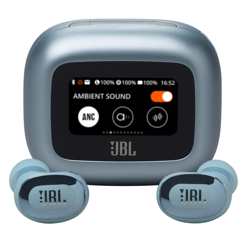Get customized sound without even looking at your phone. Use the controls on the Smart Charging Case™ of the JBL Live Buds 3 true wireless noise-cancelling earbuds with Hi-Res Audio to customize all of their features without having to open the JBL app on your device. Adjust volume and EQ, control your music, take phone calls, see messages—you can even customize the screensaver with your favorite photos. And that’s before you even get to the monumental JBL Signature Sound of the Live Buds 3 themselves. Best-in-class True Adaptive Noise Cancelling tunes out distractions. JBL Spatial Sound makes movies and music truly immersive. And if you have to take a call, 6 mics ensure perfect sound quality even in the noisiest surroundings. All this, plus a 40-hour charge: 10 hours in the buds* and another 30 in the case—and they can charge wirelessly. The charging case features a loop to attach a lanyard for even more convenience. Great sound has never been simpler. (*with ANC off)
